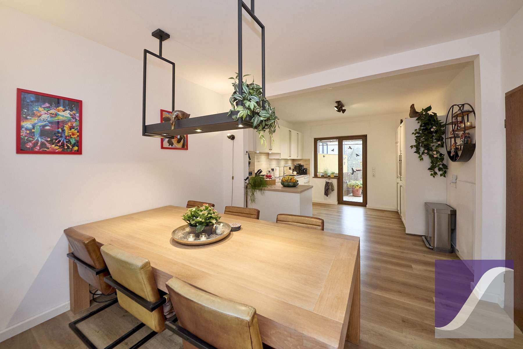 - Große Wohnküche mit Einbauküche und Zugang zur Terrasse und Garten