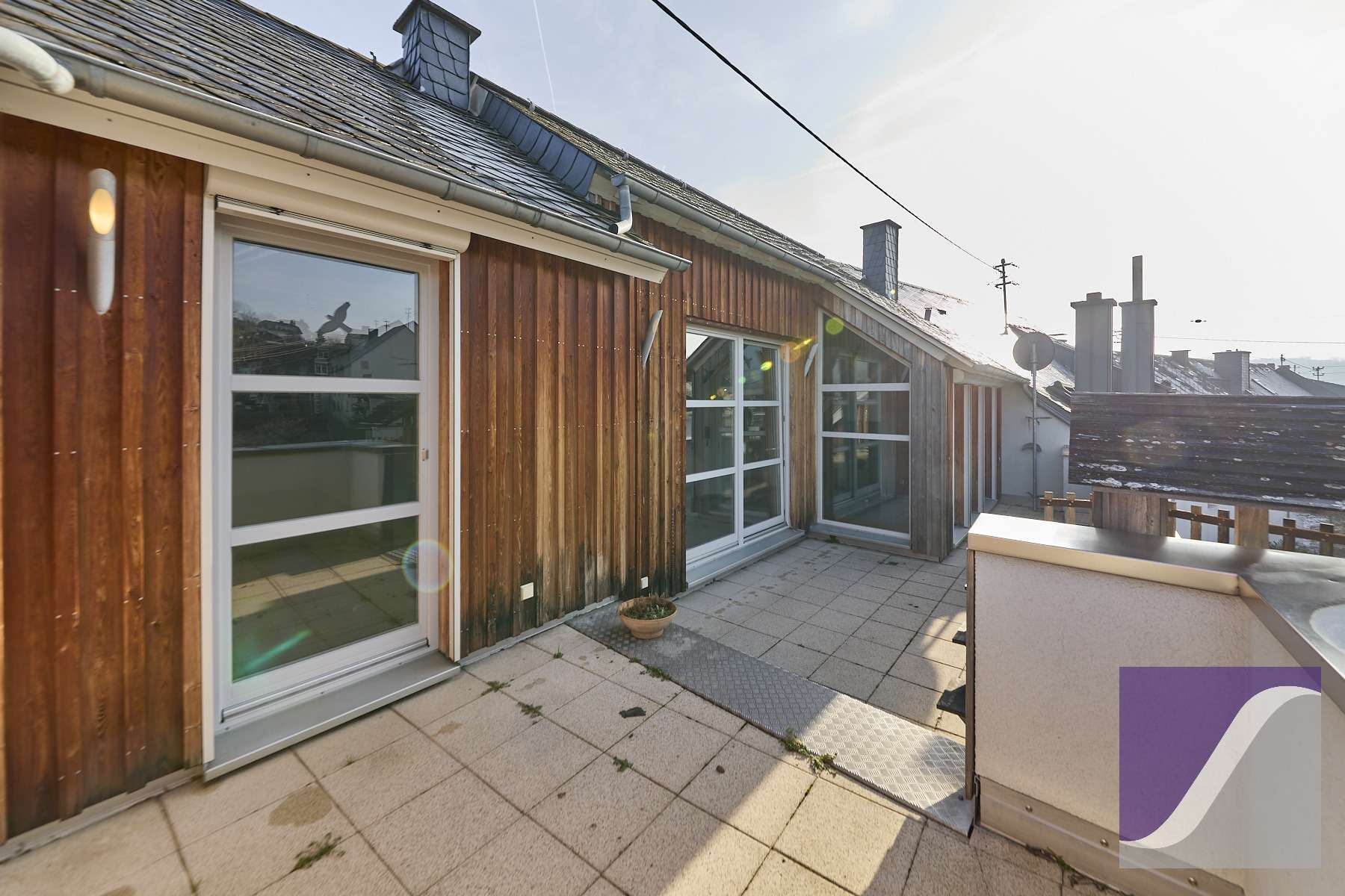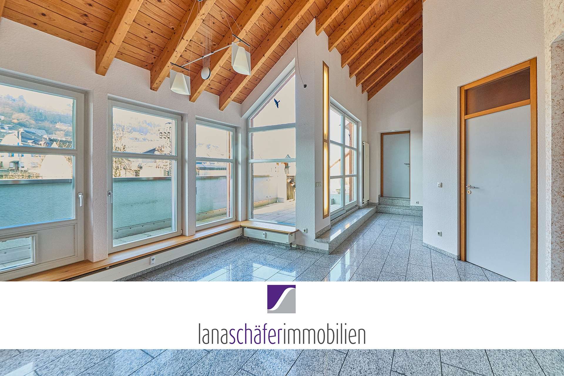 - Eingangsbereich / Wintergarten mit Kaminanschluss und Zugang zur ca. 25,5 m² großen Dachterrasse.