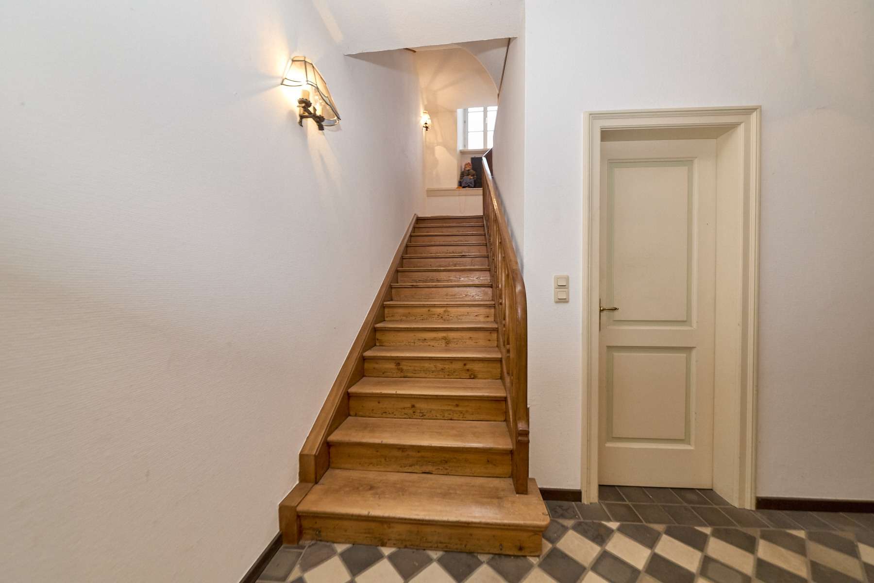 • Historischer Fliesenbelag im Eingangsbereich, teils Dielenböden