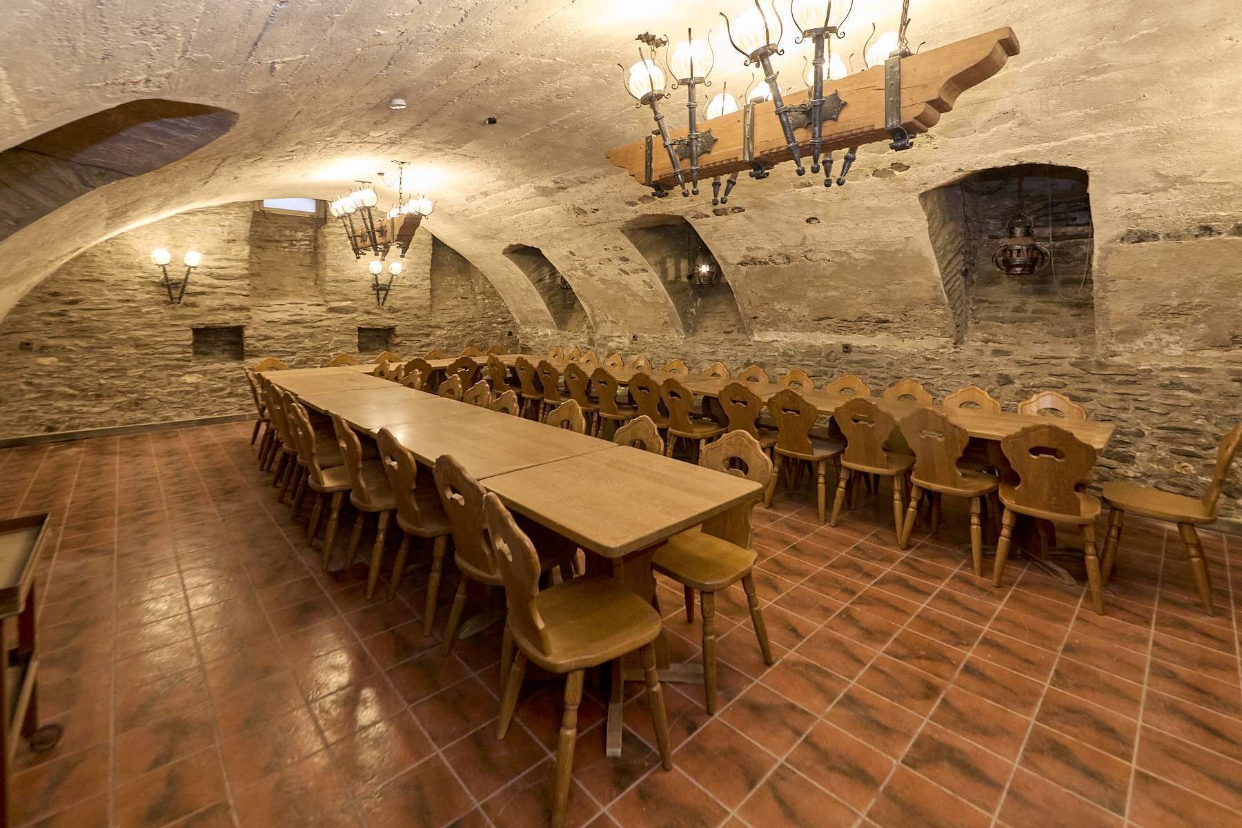 Gewölbekeller: Veranstaltungsraum, Küche, Abstellraum, WCs, Flur, separater Außeneingang