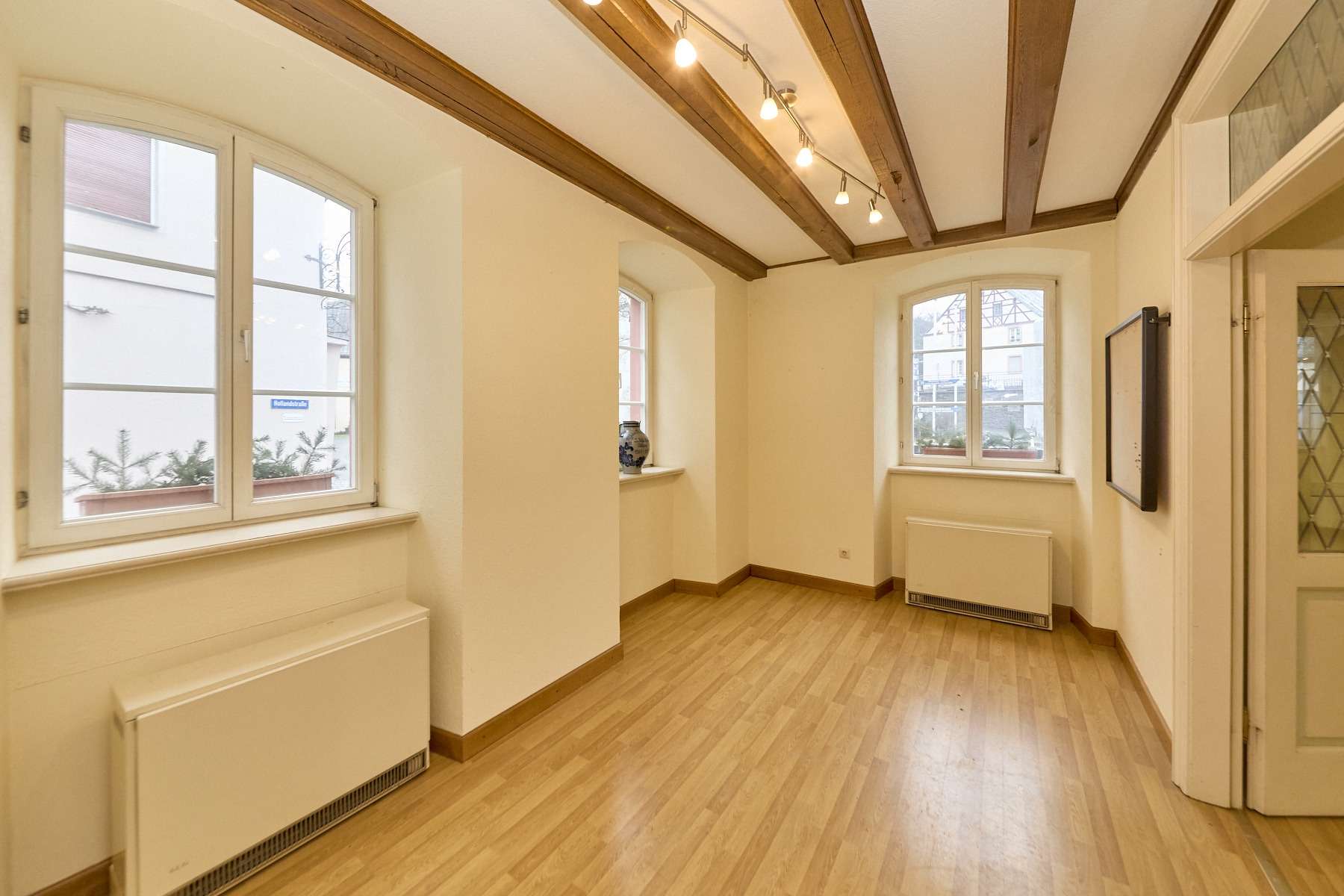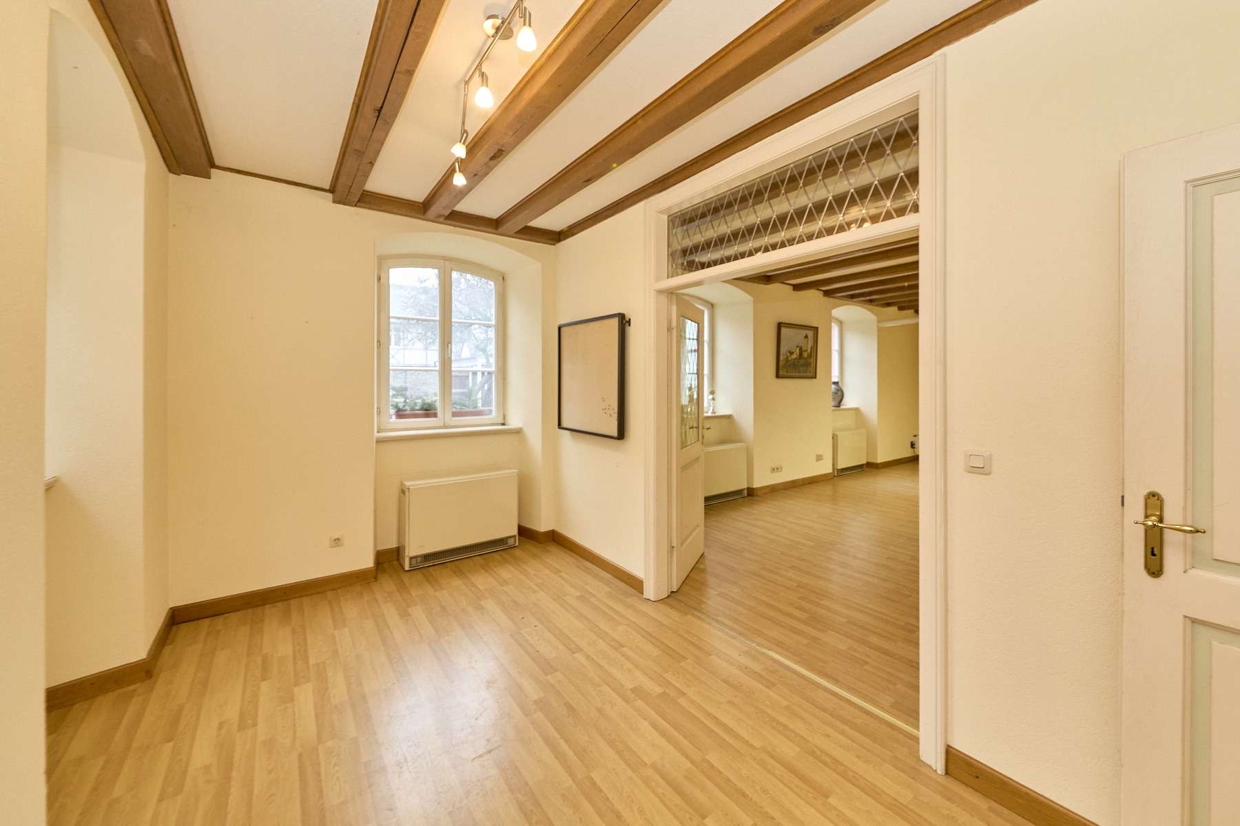 Dieses ehemalige Rathaus von Veldenz vereint historischen Charakter mit einzigartigem Wohn- und Arbeitsflair. Das im Jahr 1735 errichtete Mansardendachgebäude begeistert mit zahlreichen originalen Stilelementen wie alten Holztüren, Stuckverzierungen, hohen Decken und historischen Böden. Hier wohnen oder arbeiten Sie in einem Haus mit Geschichte – ein echtes Stück Kultur, das täglich inspiriert.